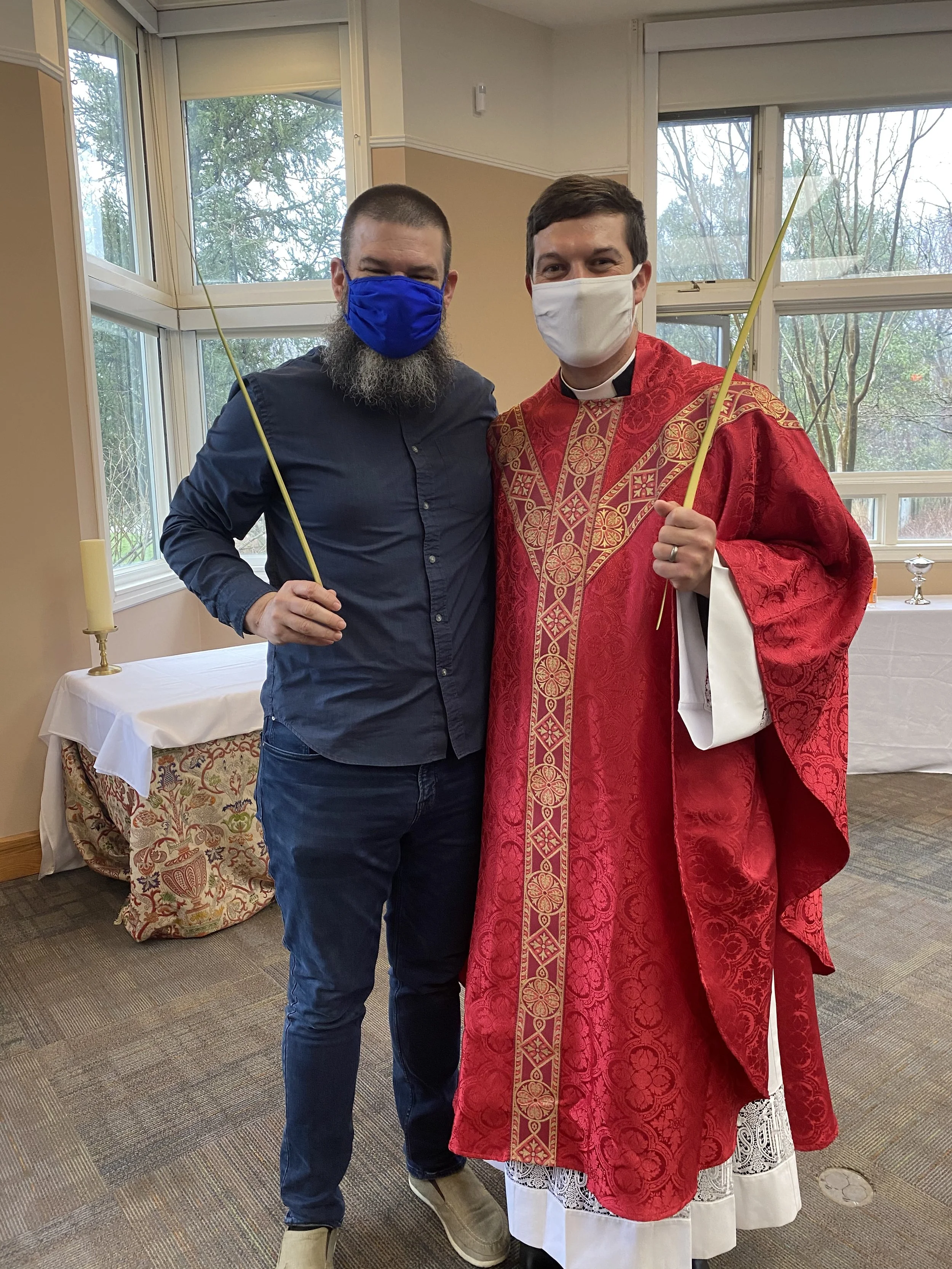 We still only met once per month through Lent. Our first Palm Sunday was a misty morning at Green Spring Gardens, but the moisture outside did not dampen your joy. One of the children did a wonderful job processing the cross as Andrew led us in “All Glory Laud and Honor” while we processed around the building and into the sanctuary.